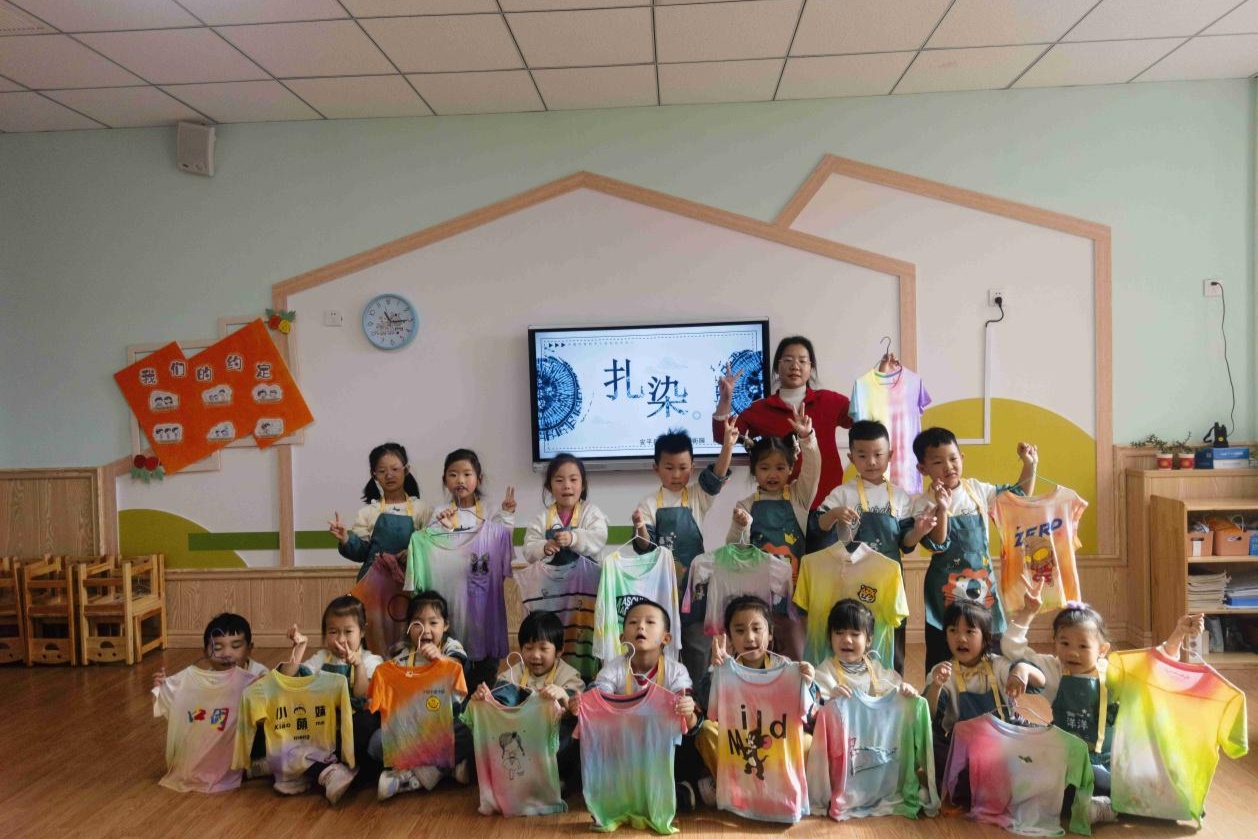 为更好、展现优良保守文化,让学生们近距离感触感染非遗魅力,省安平县长儿园建材街园推出“扎染非遗”进校园勾当,让学生们近距离感触感染非遗魅力,孩子亲从动手通过扎、染等过程,将手中的白色衣服变成了标致的工艺品。