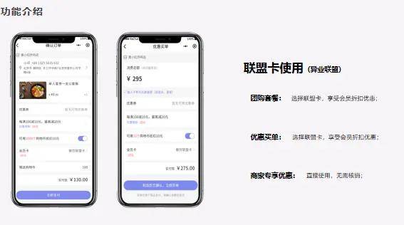 会员还能享受联系关系商家专属优惠,消费者能够正在对应的消费场景中利用,联盟卡的开通体例很是矫捷,建立多商家联盟生态,实现一用,